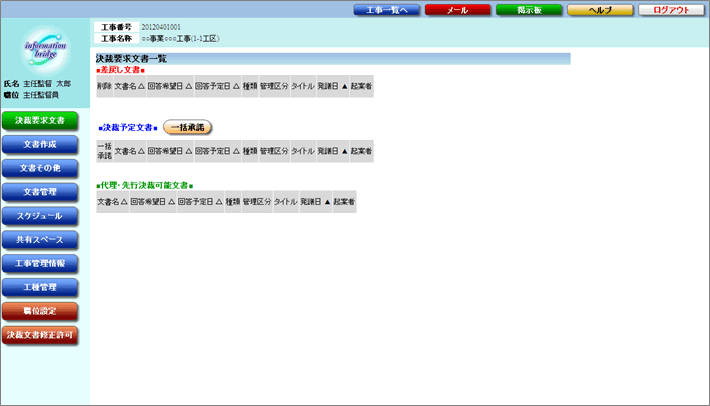 発議や決裁を行った文書が管理できます。文書管理では、現在の決裁状況や文書の検索などができます。