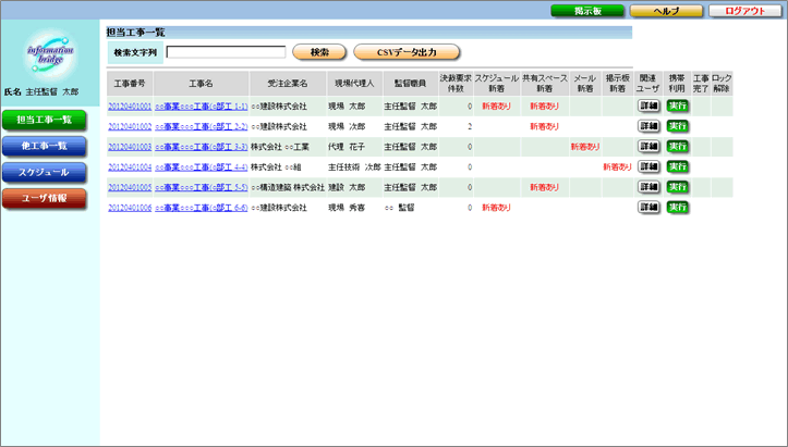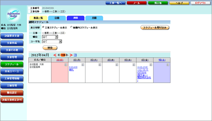 スケジュールの登録や管理ができます。スケジュールには「工事スケジュール」と「組織内スケジュール」があります。