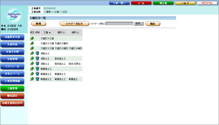 打合せ簿管理ファイル(MEET.XML)に記載する工種区分の管理を行います。工種区分は文書の発議時に登録することもできます。