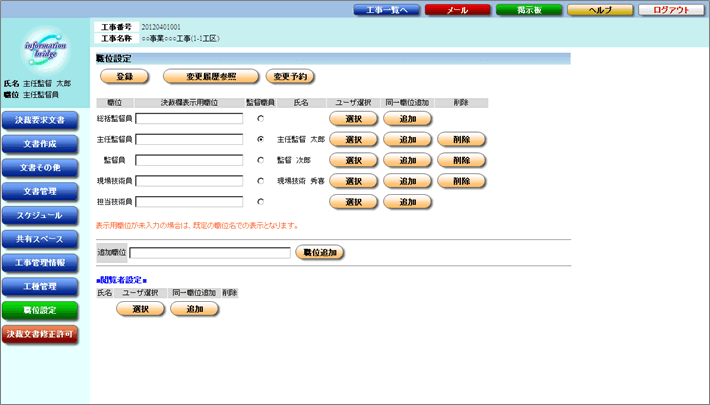 設定は、工事毎の「登録データシート」に従って、管理事務局で行います。