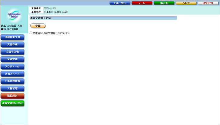 受注者に決裁済み文書の修正を許可します。利用開始時は許可しておりません。